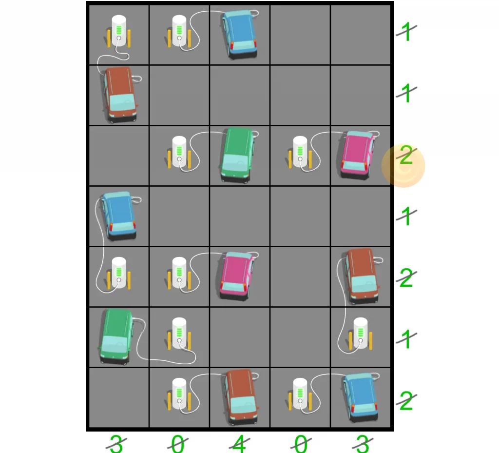 If you make a mistake by placing cars too close, the game will give you a collision alert, allowing you to correct it. The challenge is complete once every charger is connected to a car and the grid is correctly filled with cars and blanks.