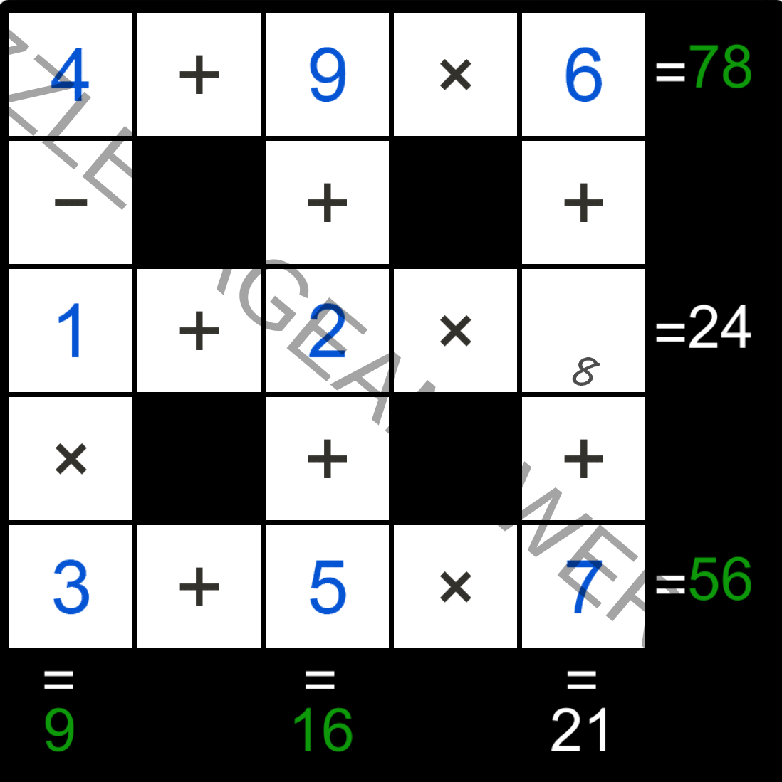 In Cross Sum puzzles you’ll be given several numbers and mathematical signs on a puzzle grid. Your duty is to fill the grid with numbers that will match any mathematical conclusion as it should.