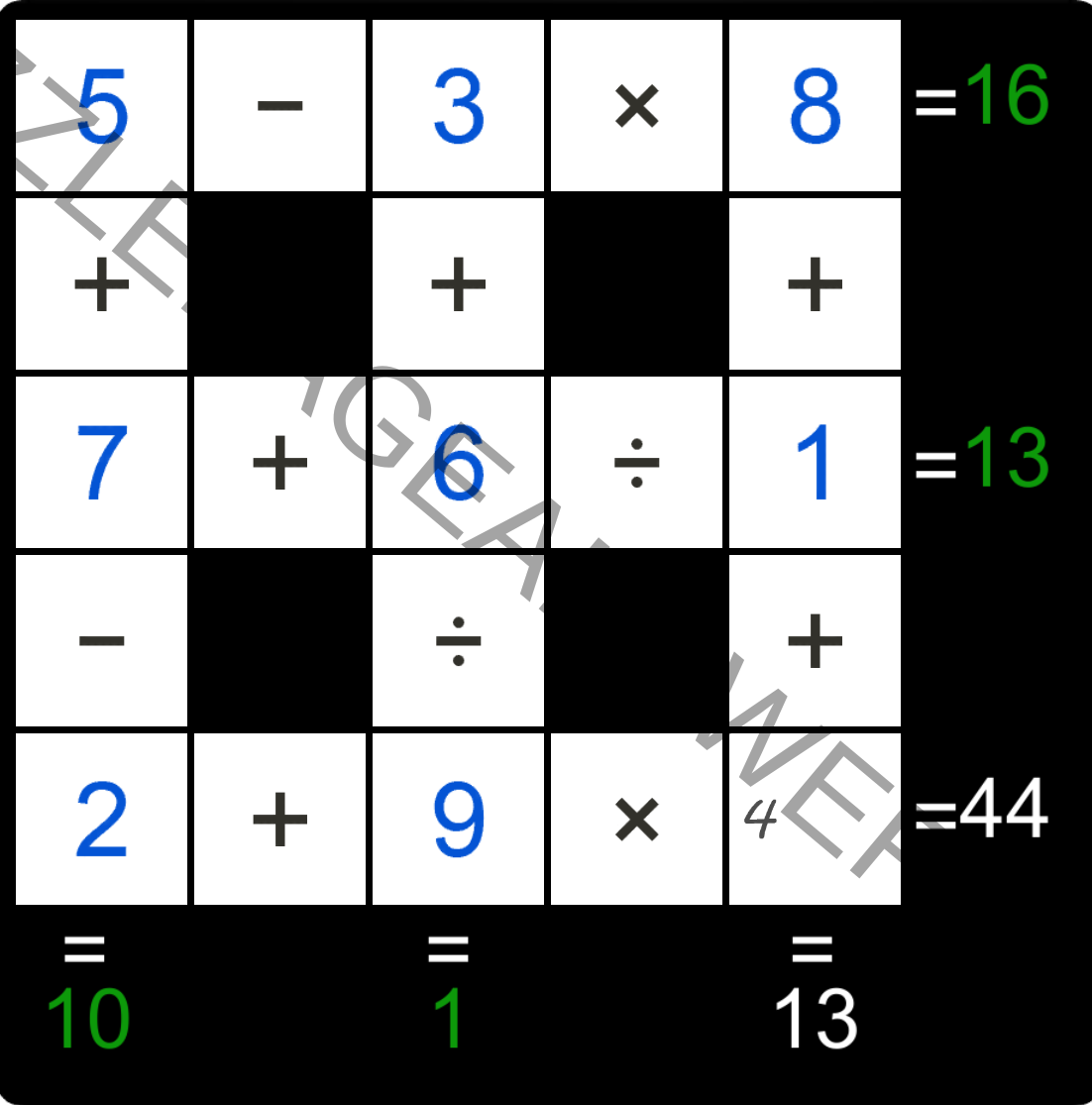 In Cross Sum puzzles you’ll be given several numbers and mathematical signs on a puzzle grid. Your duty is to fill the grid with numbers that will match any mathematical conclusion as it should.