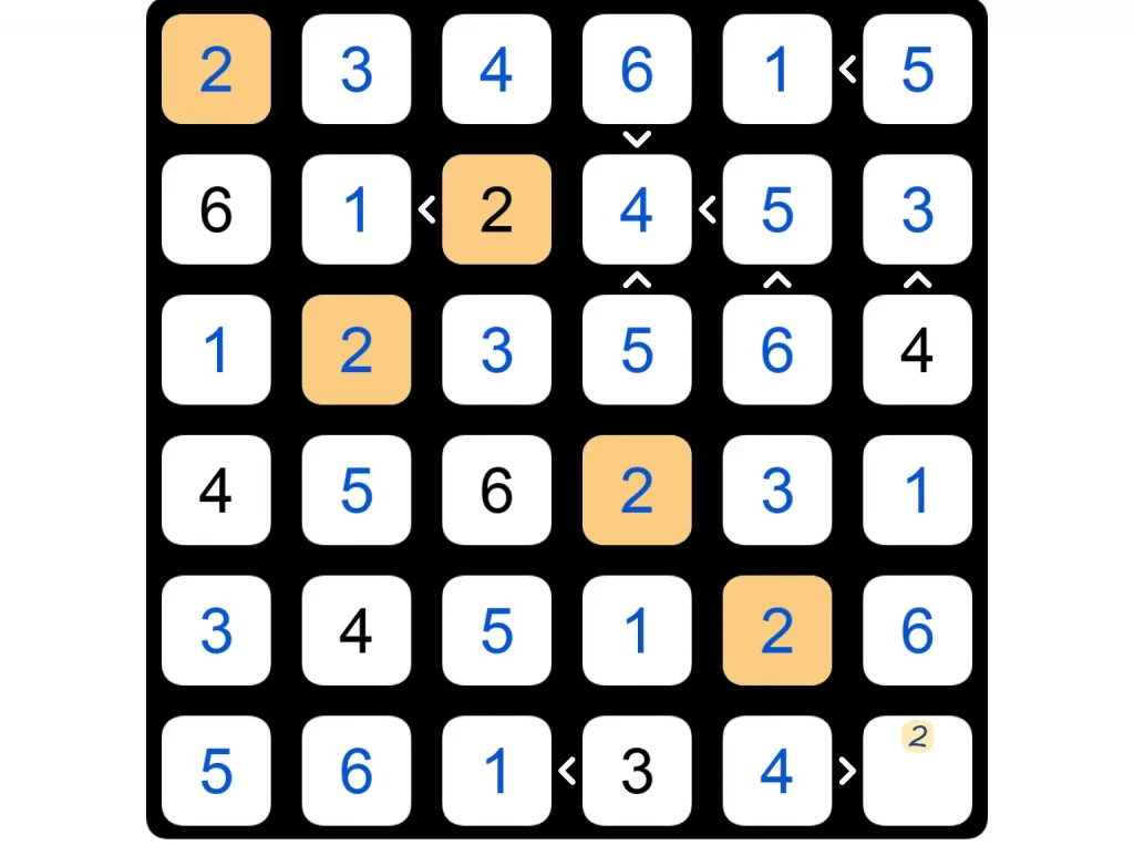 The purpose of Futoshiki is to discover the digits hidden inside the board’s cells; each cell is filled with a digit between 1 and the board’s size. On each row and column, each digit appears just once; therefore, when revealed, the digits of the board form a so-called Latin square.