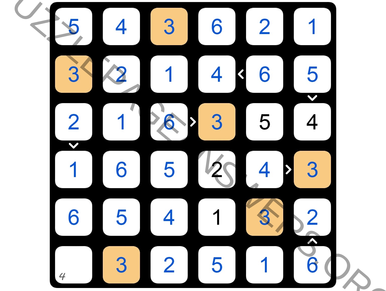 The purpose of Futoshiki is to discover the digits hidden inside the board’s cells; each cell is filled with a digit between 1 and the board’s size. On each row and column each digit appears just once; therefore, when revealed, the digits of the board form a so-called Latin square.