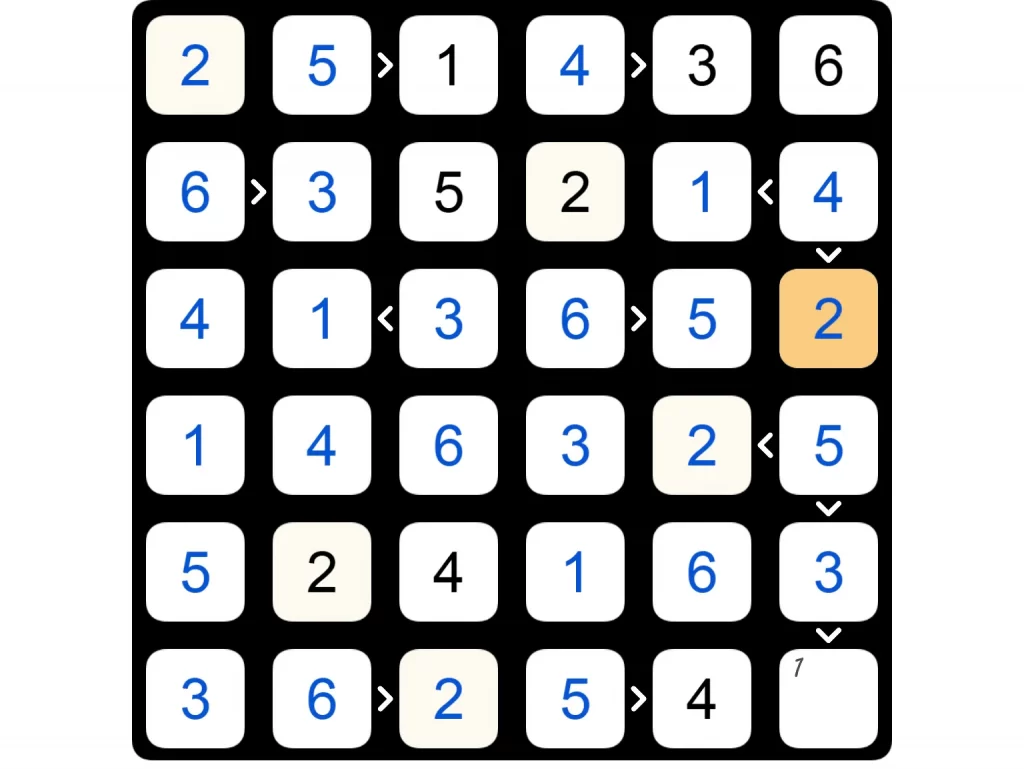 The purpose of Futoshiki is to discover the digits hidden inside the board’s cells; each cell is filled with a digit between 1 and the board’s size. On each row and column, each digit appears just once; therefore, when revealed, the digits of the board form a so-called Latin square.