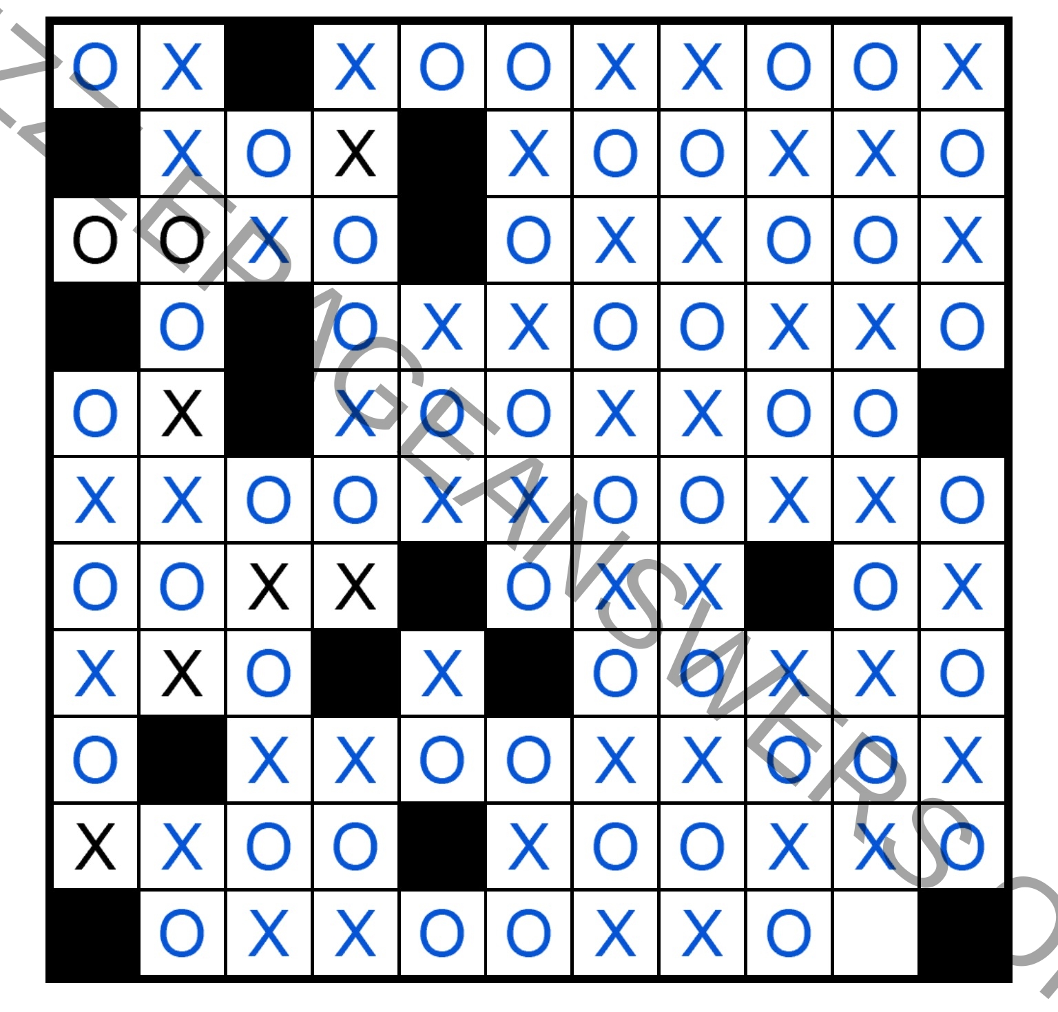 The rules of Os and Xs are pretty simple. You’re given a grid with several already filled Os or Xs and your job is to fill the whole grid with the only rule of not applying more than 3 of the same sign in a line or column. Any line and column must contain the same number of Xs as Os.