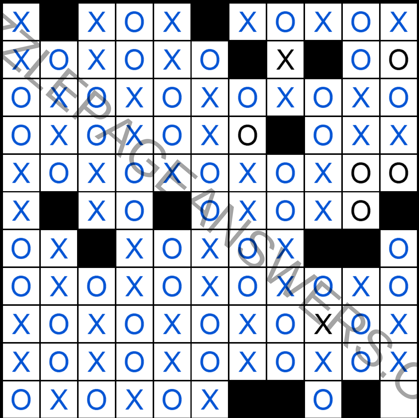 The rules of Os and Xs are pretty simple. You’re given a grid with several already filled Os or Xs and your job is to fill the whole grid with the only rule of not applying more than 3 of the same sign in a line or column. Any line and column must contain the same number of Xs as Os.