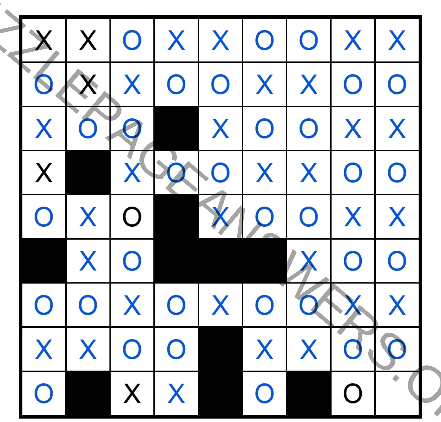 The rules of Os and Xs are pretty simple. You’re given a grid with several already filled Os or Xs and your job is to fill the whole grid with the only rule of not applying more than 3 of the same sign in a line or column. Any line and column must contain the same number of Xs as Os.