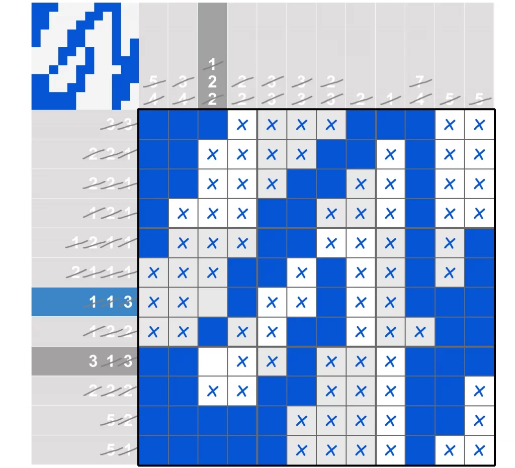 The challenge comes from figuring out which squares to mark based on the numerical clues, ensuring that all the numbers match up and the hidden picture emerges correctly.