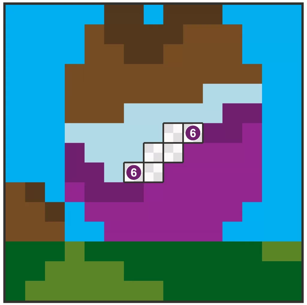 The object of this puzzle is to reveal the hidden picture by painting paths between pairs of the same number. In other words, for every clue, it is necessary to find another clue of the same value and join them together according to these criteria. Paths can be executed horizontally or vertically but they can’t cross other existing paths.